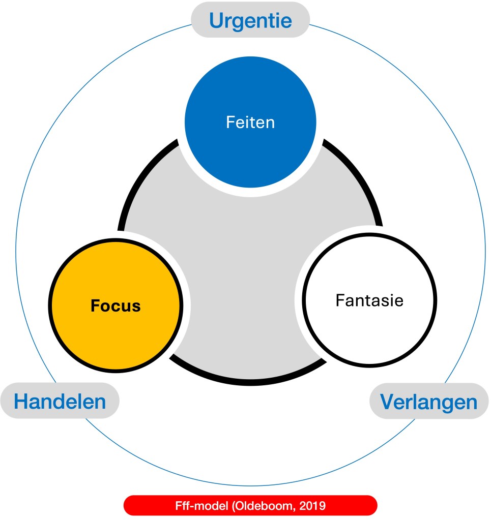 Het fff-model volgt drie basale vragen: hoe zijn de feiten, welke fantasie is er, en welke focus is nodig of gewenst? Het model is om twee redenen ontworpen. In de eerste plaats kan het model het ontwikkelingsproces van (aanstaande) professionals, teams of organisaties stimuleren. In de tweede plaats is het model bedoeld om ingewikkelde processen in alledaagse taal te bespreken. Door het alledaagse taalgebruik neemt de kans op vruchtbare onderlinge communicatie toe.